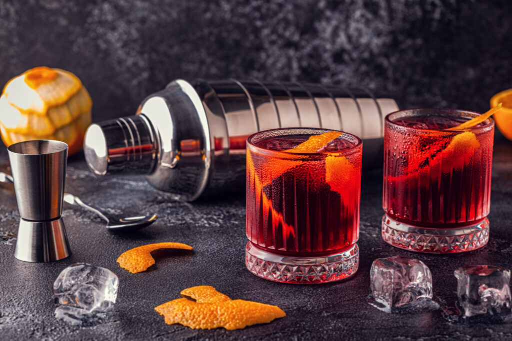 ネグローニのアルコール(ベース)・甘味・苦味(ビターズ)の組み合わせは、オールドファッションドやマンハッタンとも似ており、多くのクラシックカクテルで使われている味の組み合わせ方です。その中でもネグローニは、3つの材料をイコールパーツ(同じ量)入れることで完成するため覚えやすく、バーテンダーの多くが最初に学ぶカクテルとしても有名です。