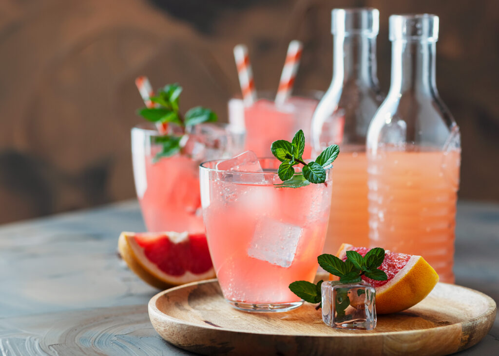 カンパリとグレープフルーツは両方とも苦味が強く、単体だと中々飲みづらいですが、トニックウォーターが加わることで、炭酸が香りを開き、程よい甘味が加わることで角をとり、飲みやすくします。色は使うグレープフルーツジュースにもよるが、薄いピンクやオレンジ色をしており、見た目もかわいいカクテルとして女性を中心に人気を博しています。