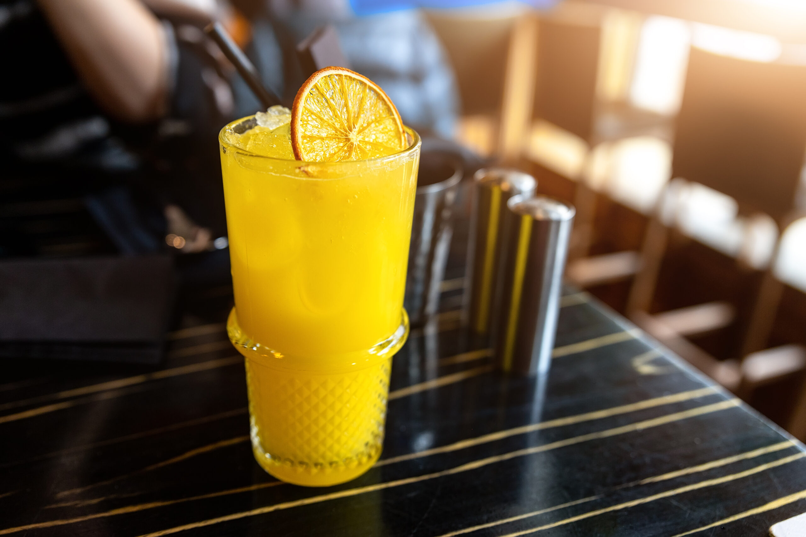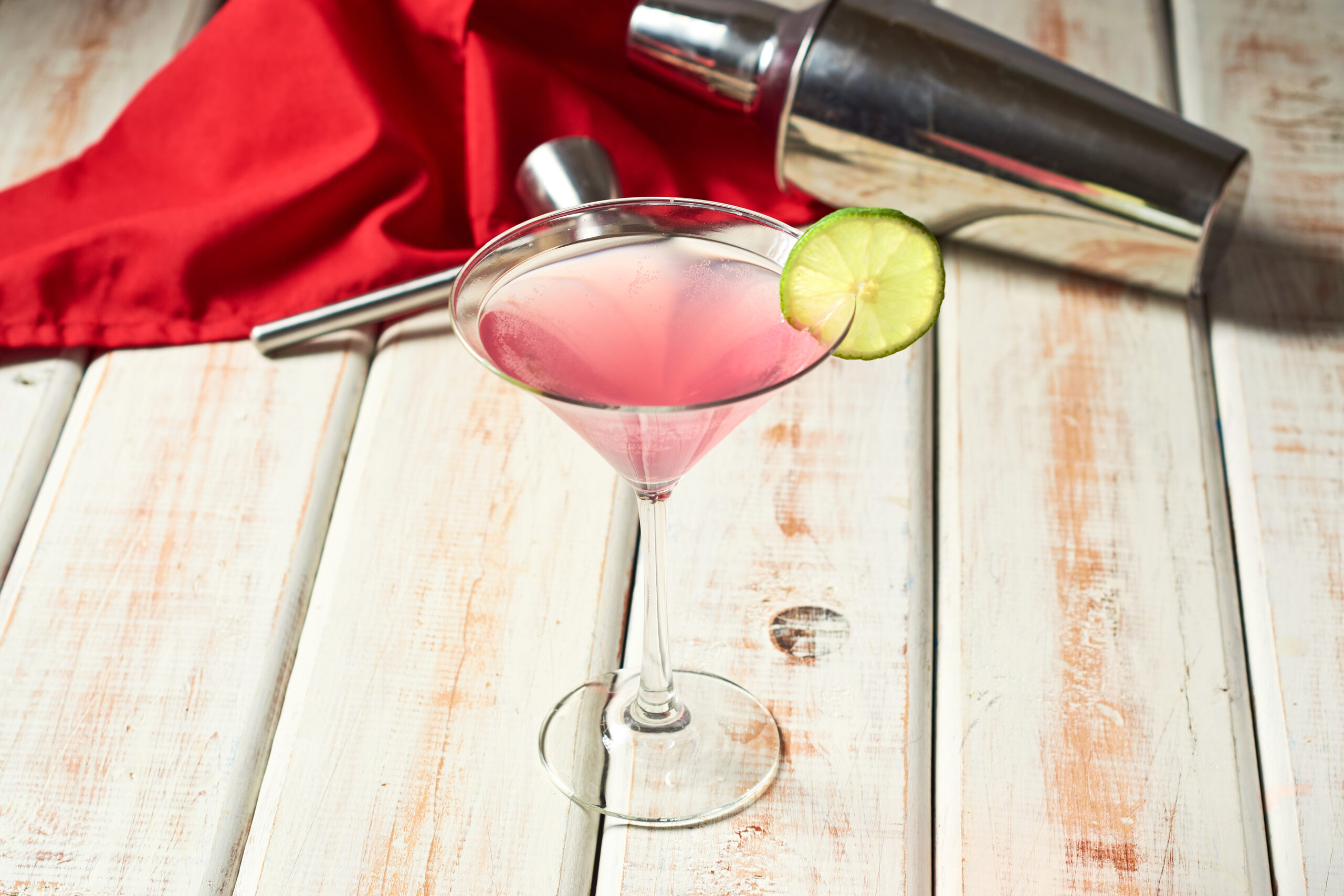 - シェーカーの表面が白くなったら、冷やしたカクテルグラスに注ぐ
